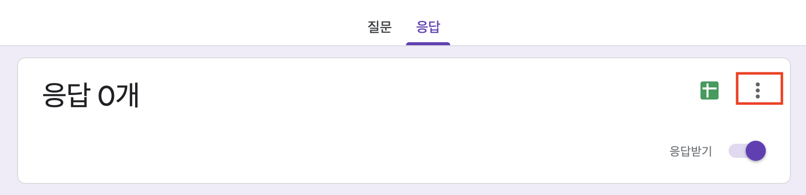 1. 설문지 수정 링크(/edit으로 끝남) 들어간 뒤, '응답' 탭으로 들어갑니다.